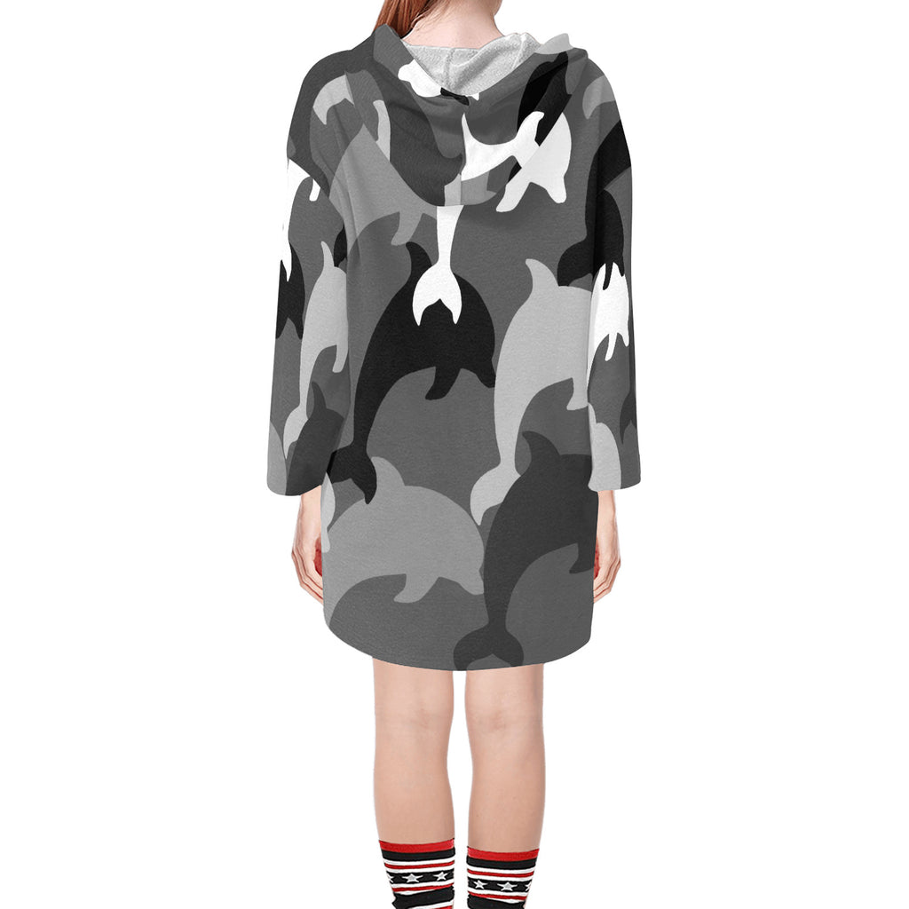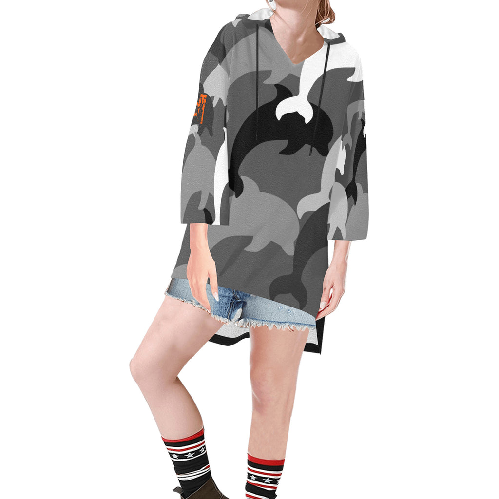 - Tunic hoodie features a hood, V-neck, cropped sleeves , dropped shoulder and step hem for a cool look.