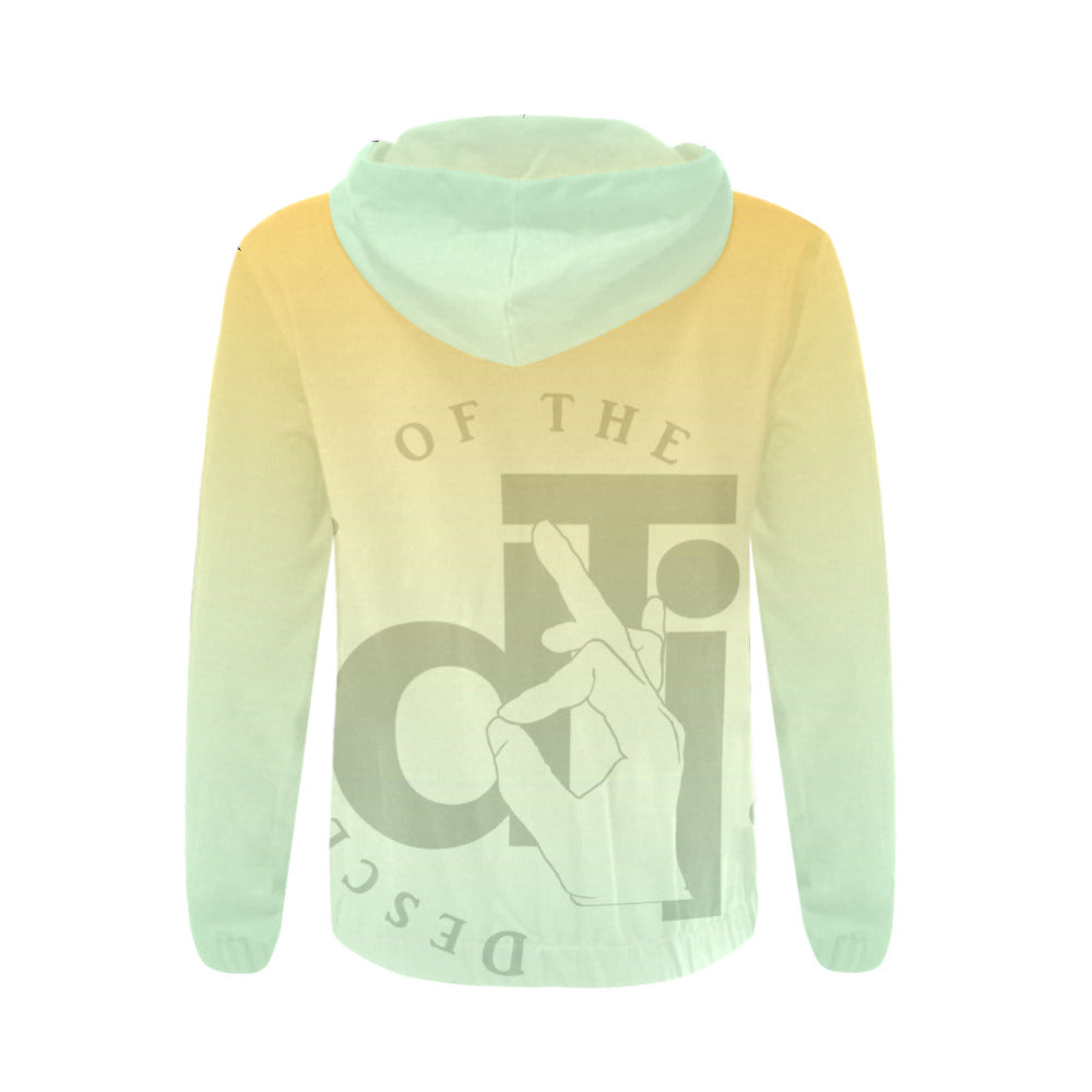 - Dye-sublimation printing, Personalized all-over print full zip hoodie for men.