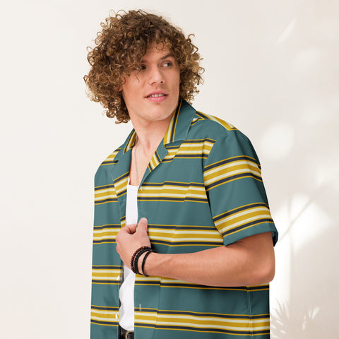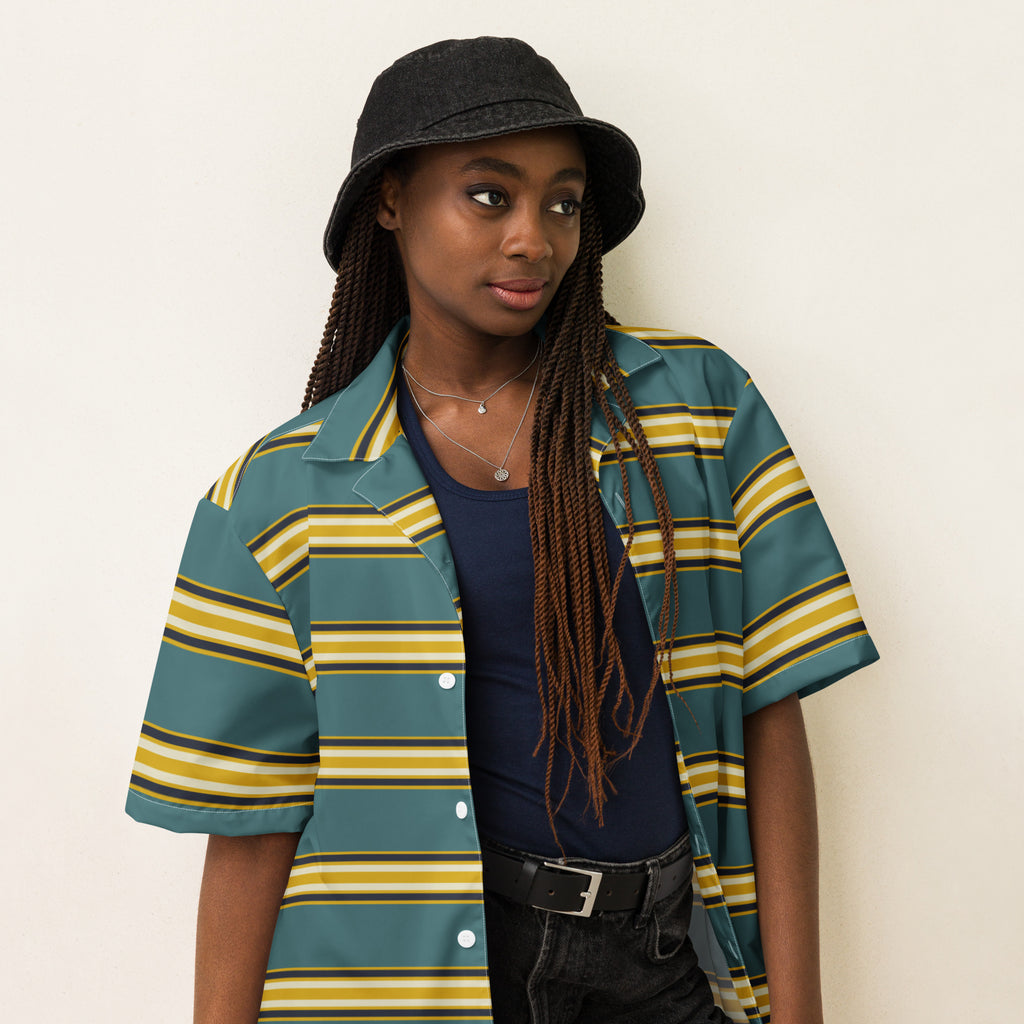 DTI Retro Island Teal Gold Stripe Unisex button shirt